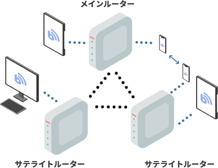 メッシュWi-Fiシステムを搭載している機器がございますので、Wi-Fiのエリアを広げることができます。
